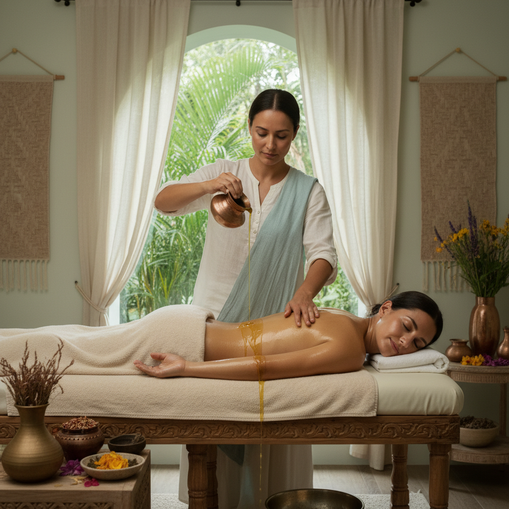 Аюрведический массаж — это древняя индийская техника, направленная на гармонизацию тела и ума через работу с энергией, мышцами и кожей. В основе процедуры — использование тёплых натуральных масел, подбираемых с учётом типа конституции (доши), что помогает глубоко расслабить мышцы, улучшить кровообращение, питание тканей и вывести токсины из организма.